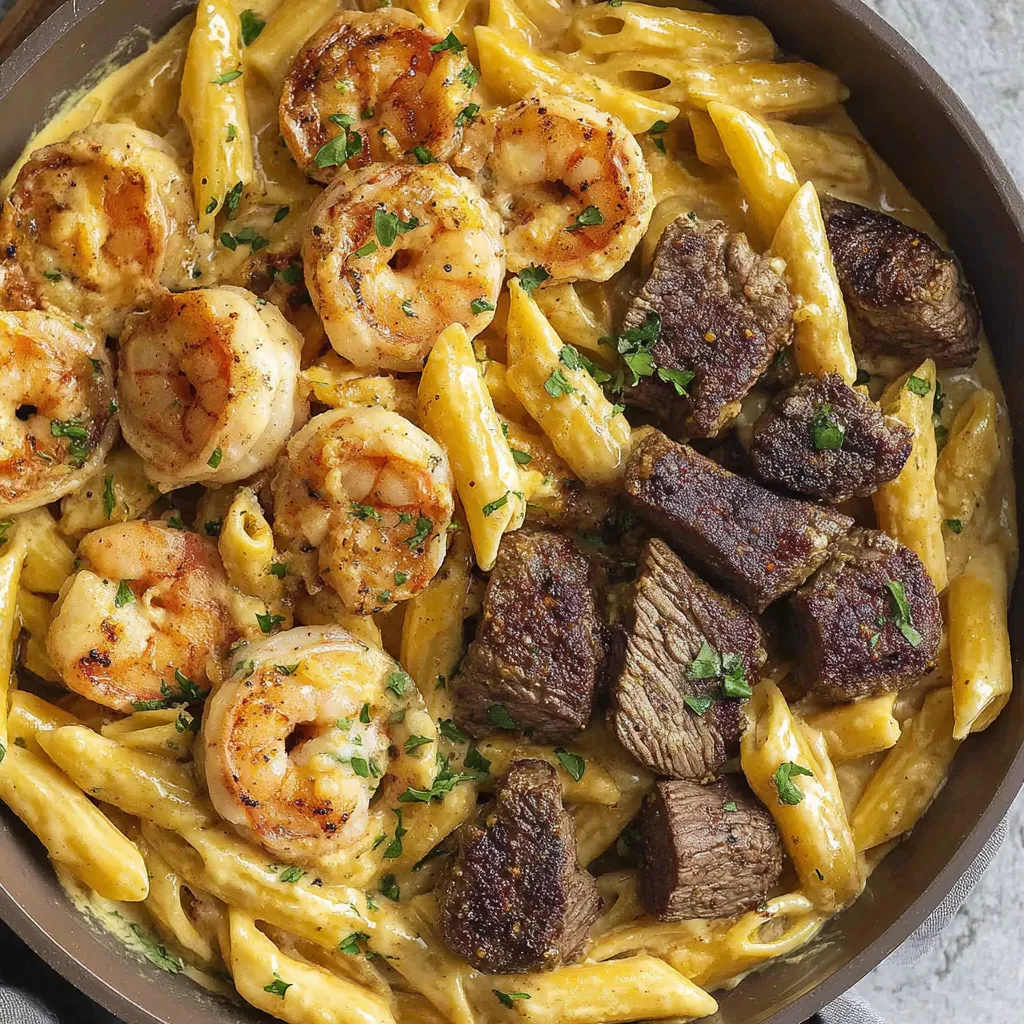 Blackened Steak and Shrimp Alfredo