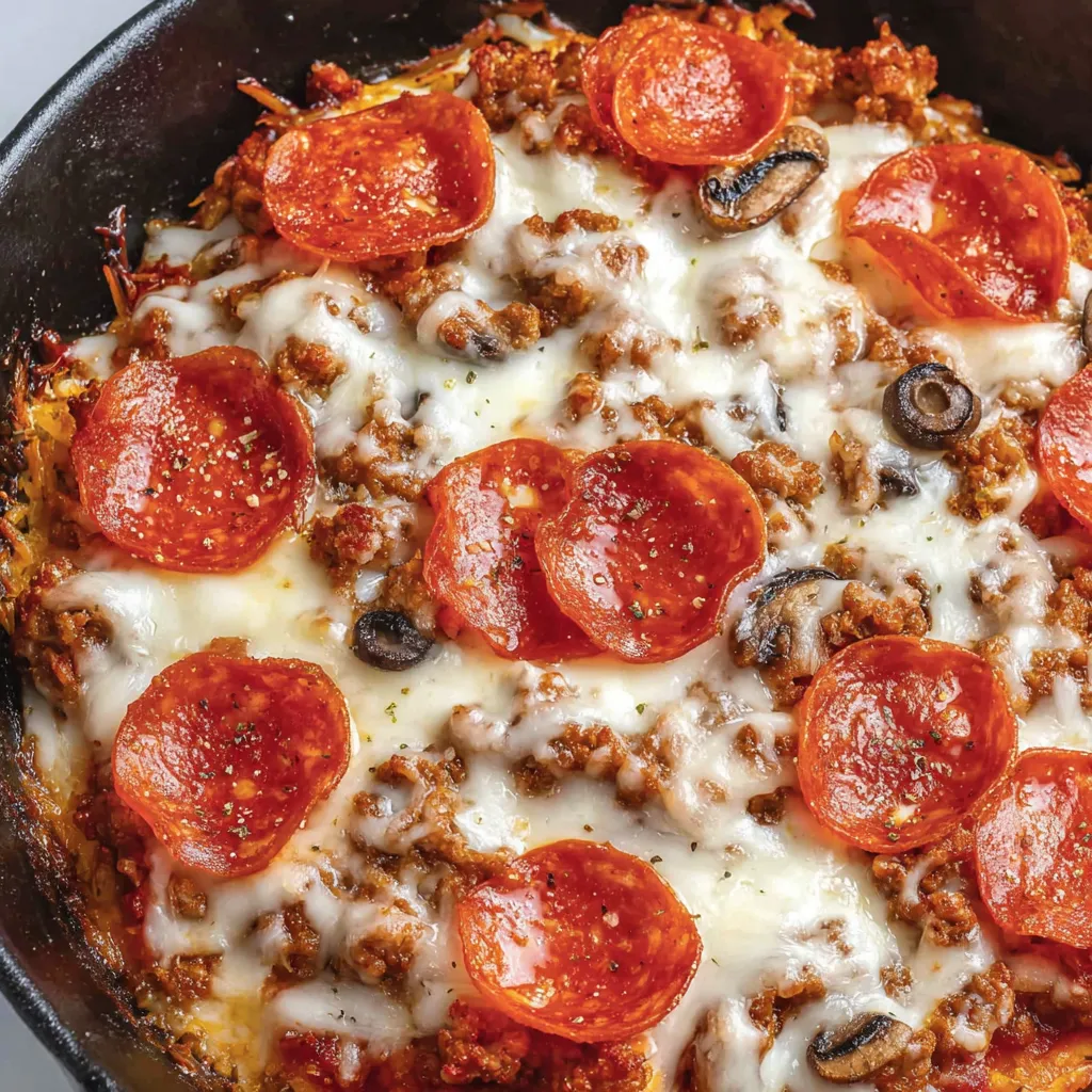 Skillet Crustless Pizza with Sausage and Pepperoni